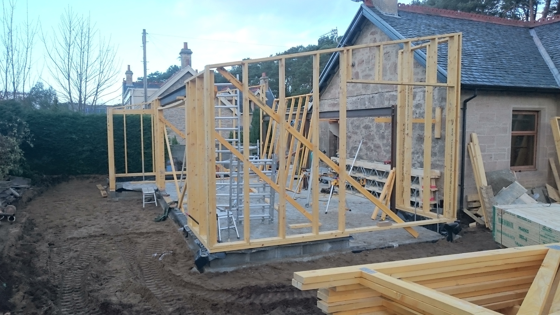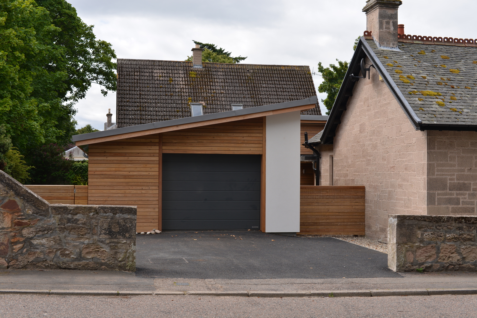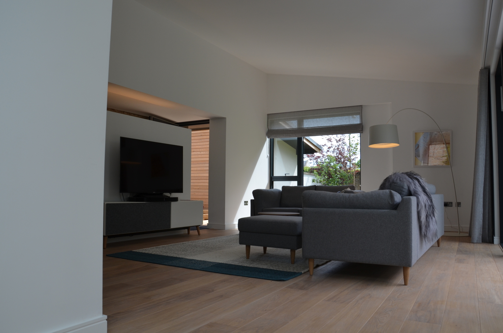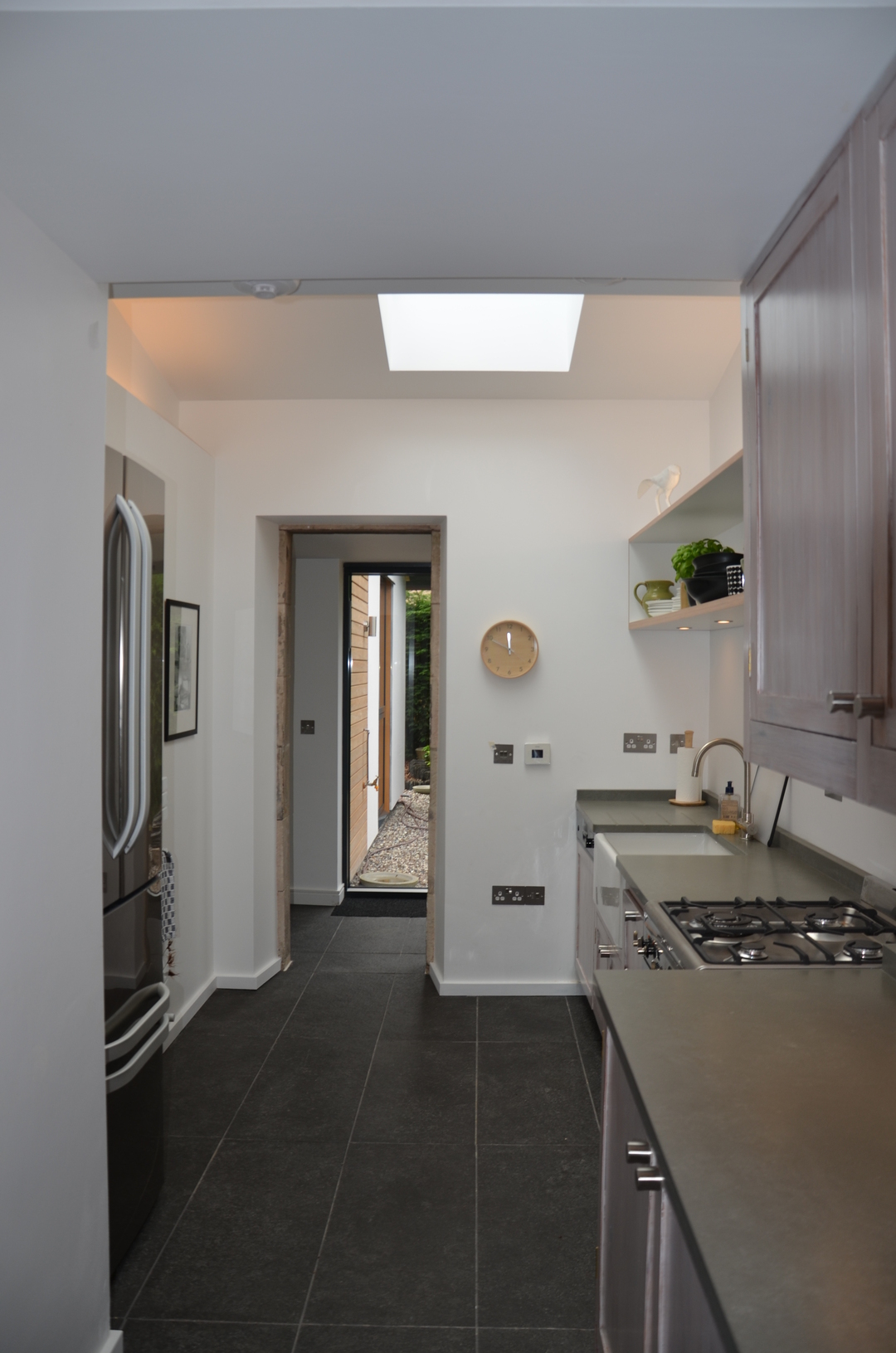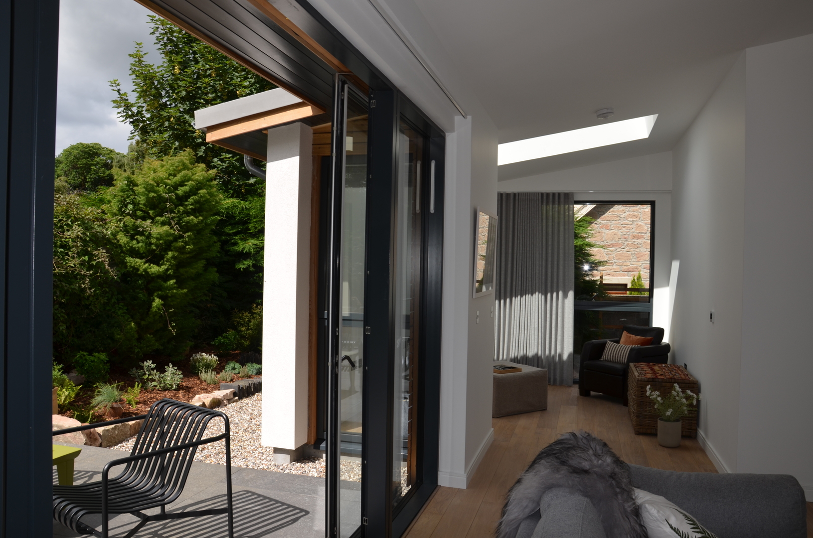 New extension with lead link roof to existing house. New roof to kitchen incorporating new skylight window. New windows to main house. New engineered oak flooring fitted throughout existing house and to new extension. New garage built to complement design of new extension.