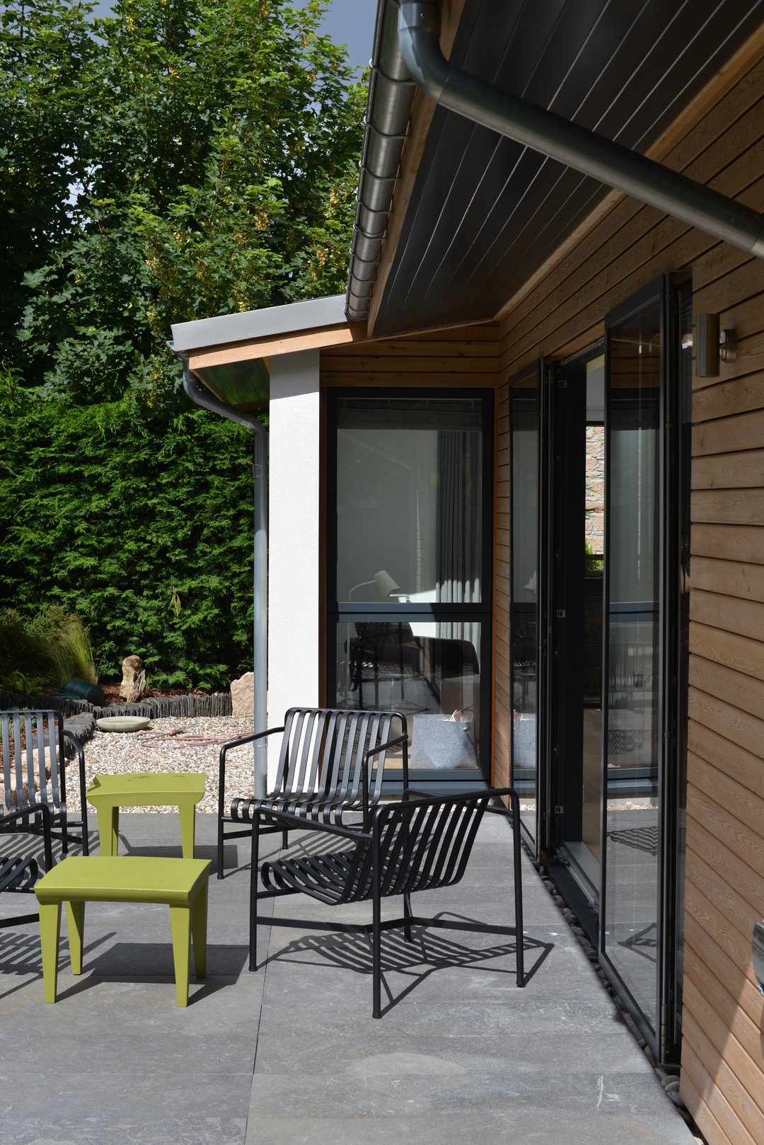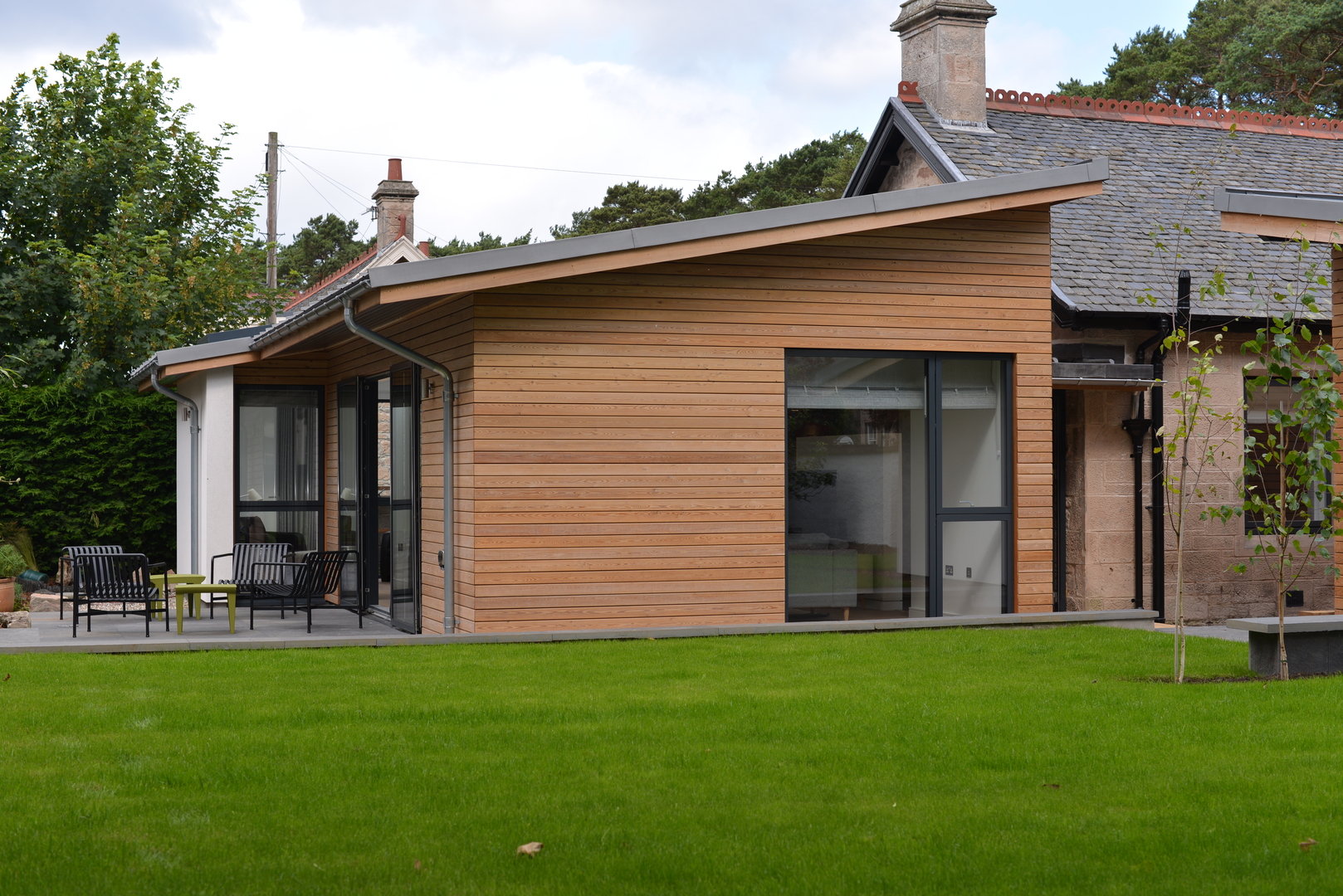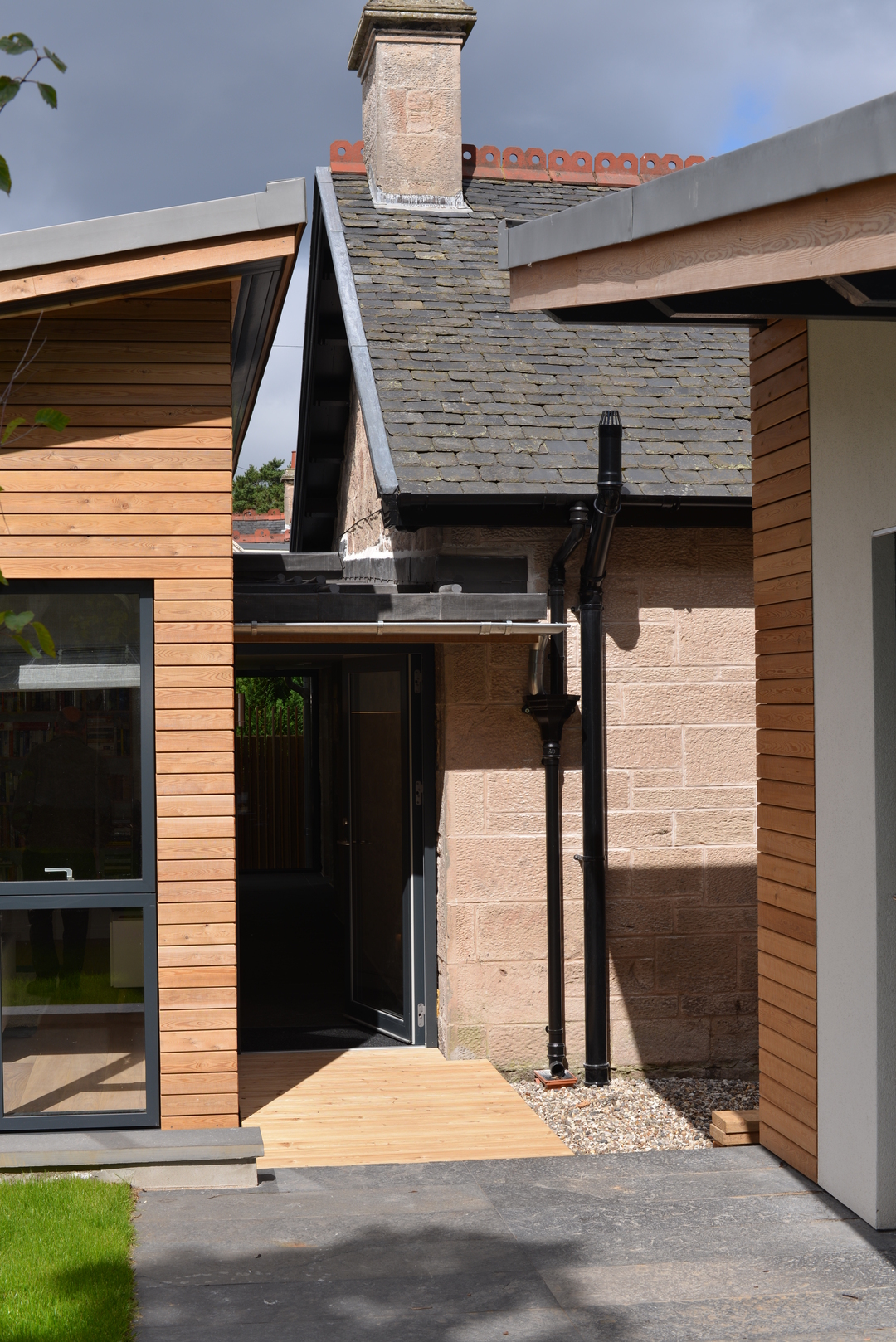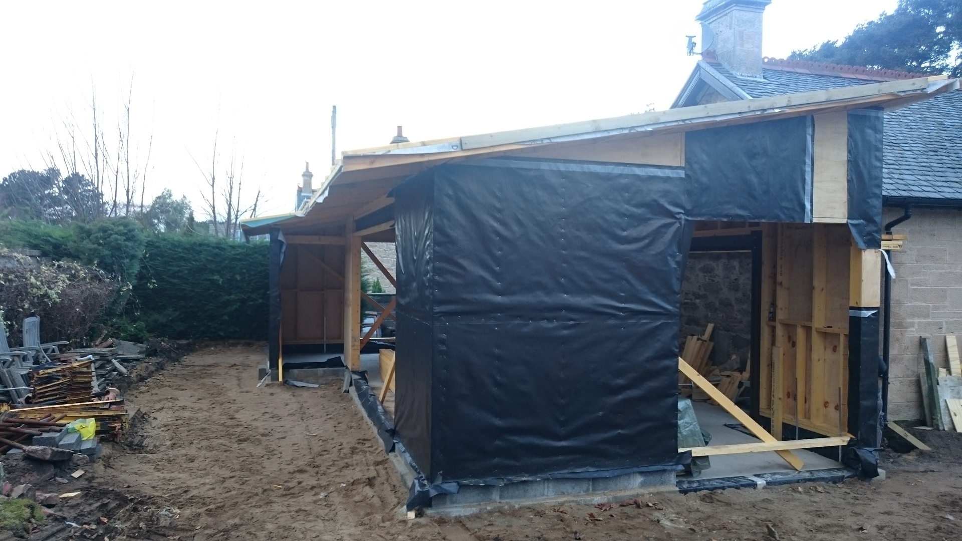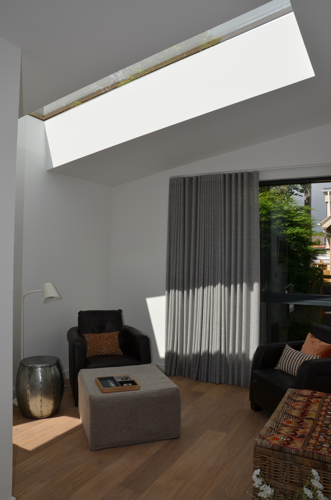 New extension with lead link roof to existing house. New roof to kitchen incorporating new skylight window. New windows to main house. New engineered oak flooring fitted throughout existing house and to new extension. New garage built to complement design of new extension.