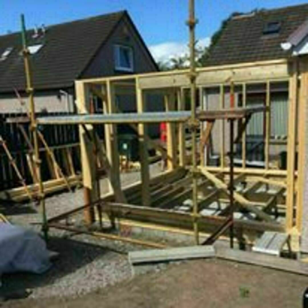 New single storey extension to existing house and new engineered flooring fitted.Extension finished off with off-sawn siberian larch.