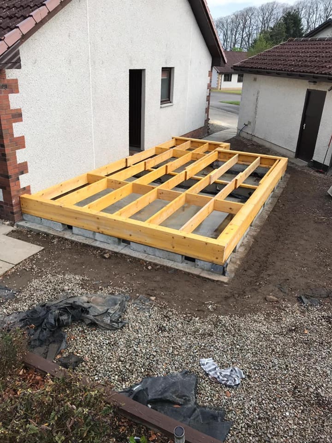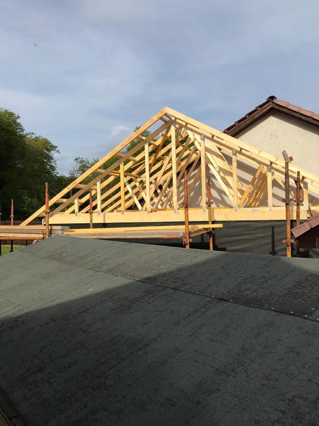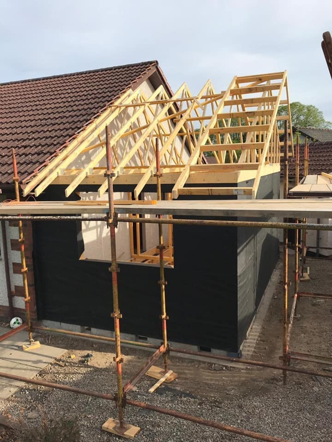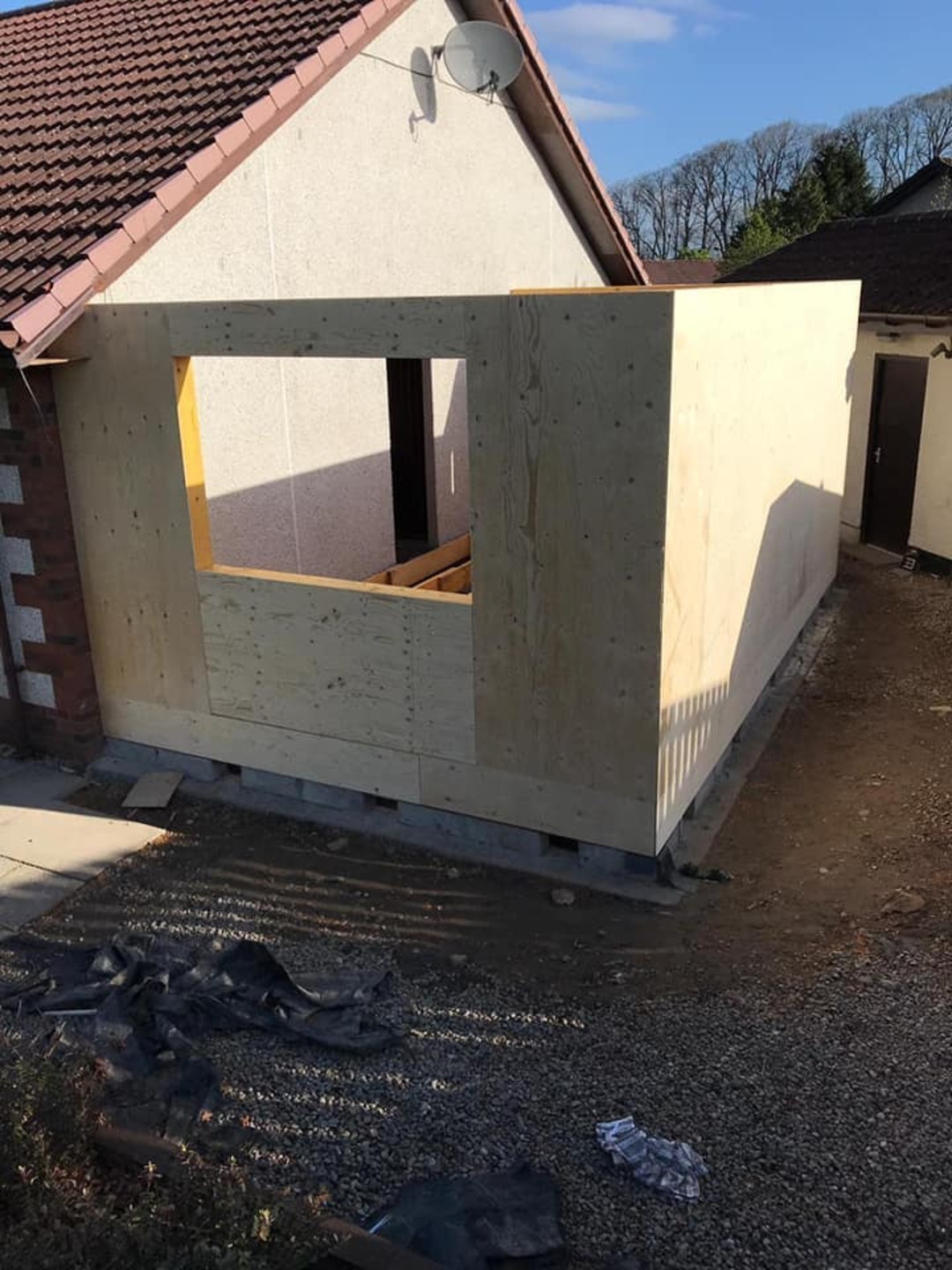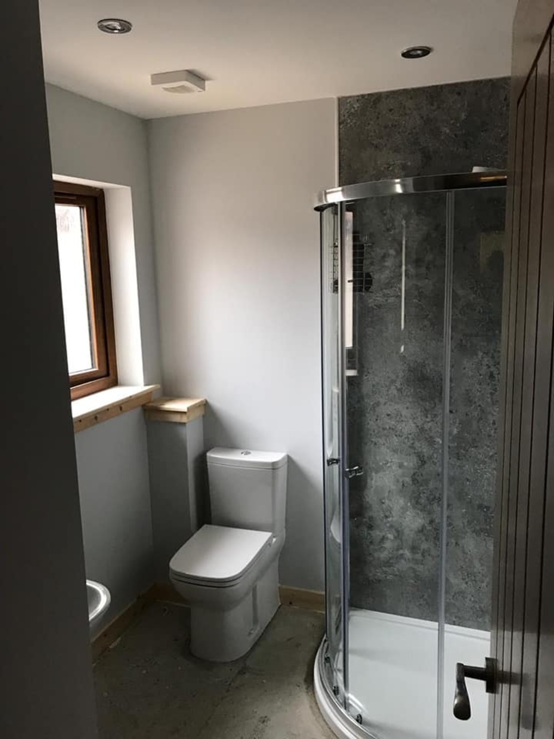New extension to house - bedroom with built in cupboards and ensuite bathroom. Also new windows and back door fitted to existing house.