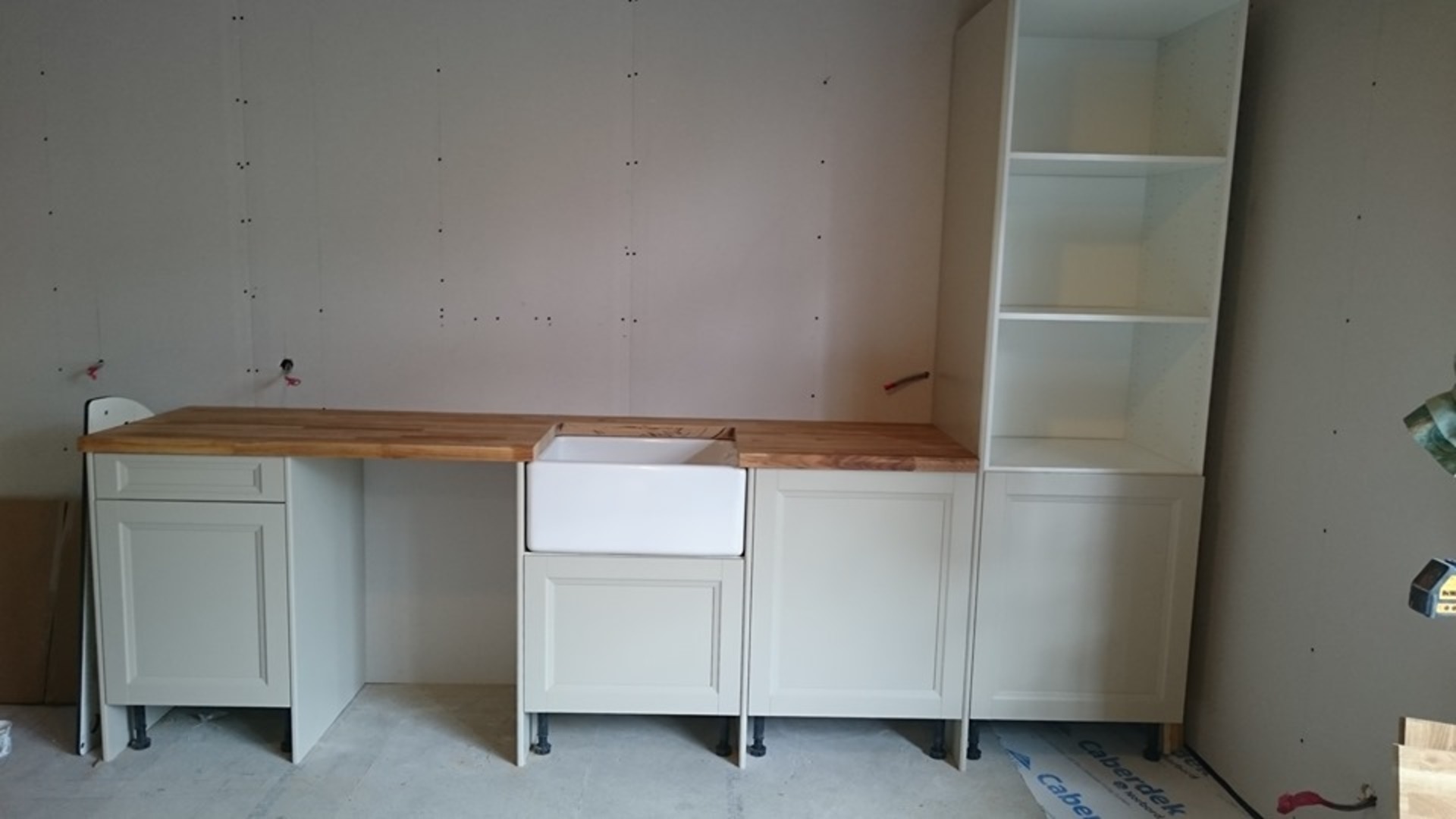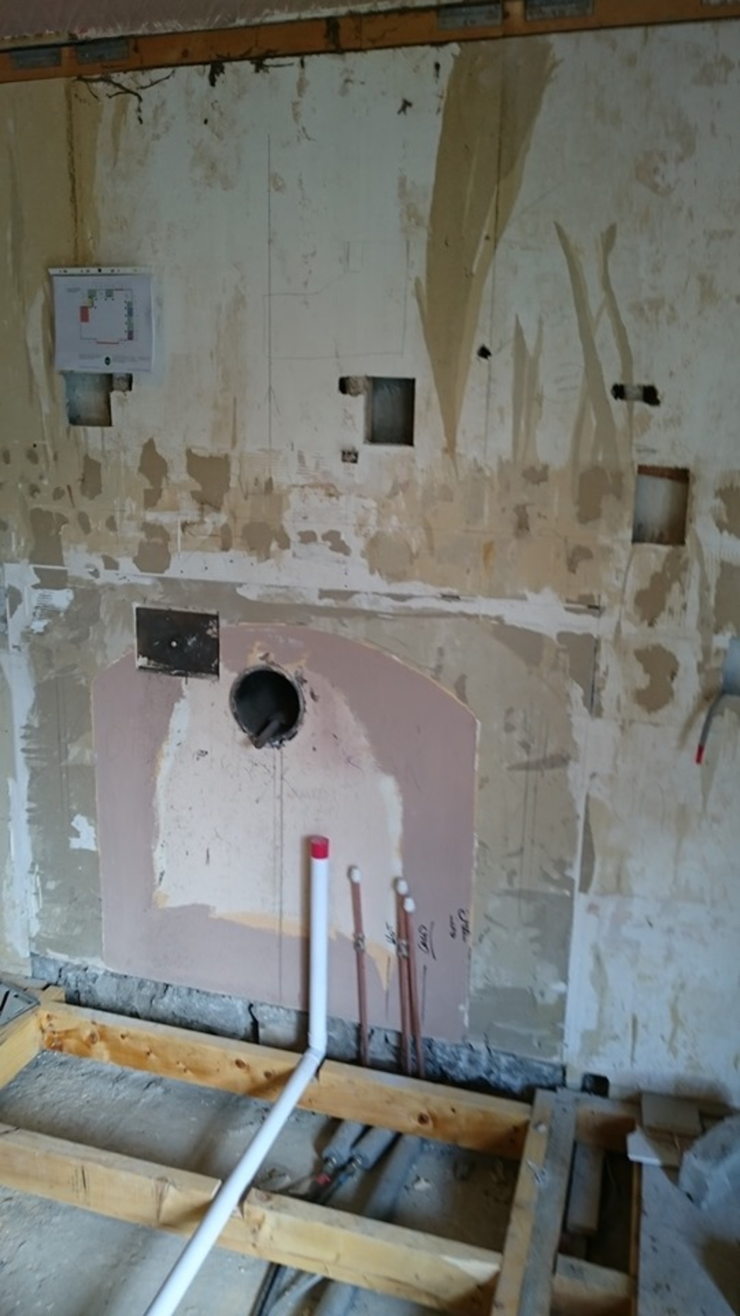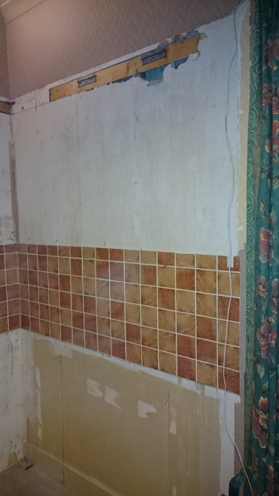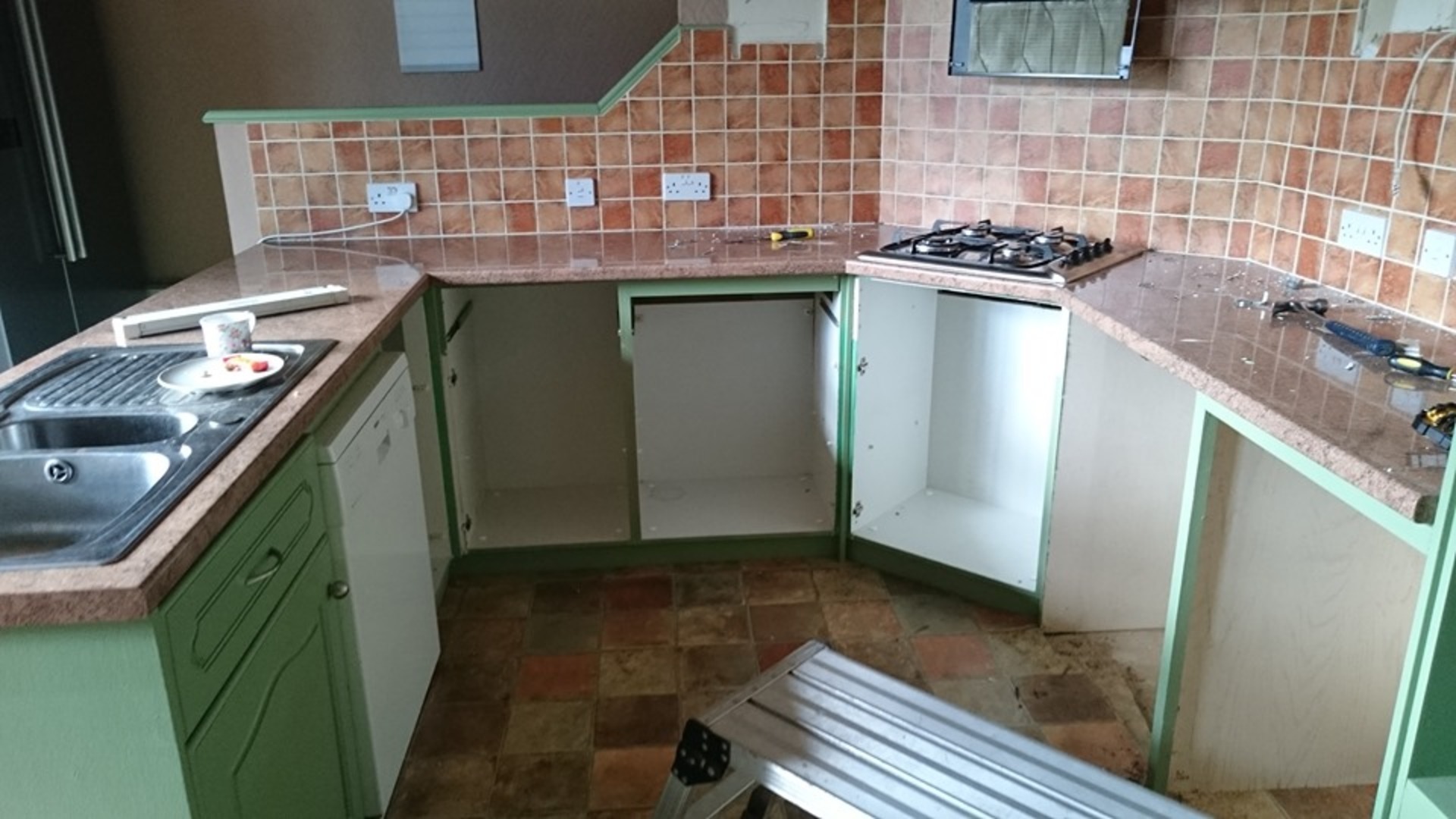 Removed old kitchen and old fire to begin with then re-plaster boarded the walls and fitted them with mdf V- lining panels. Lifted up flooring, fitted new insulation and laid new chipboard floor before completing the job with the installation of the new kitchen