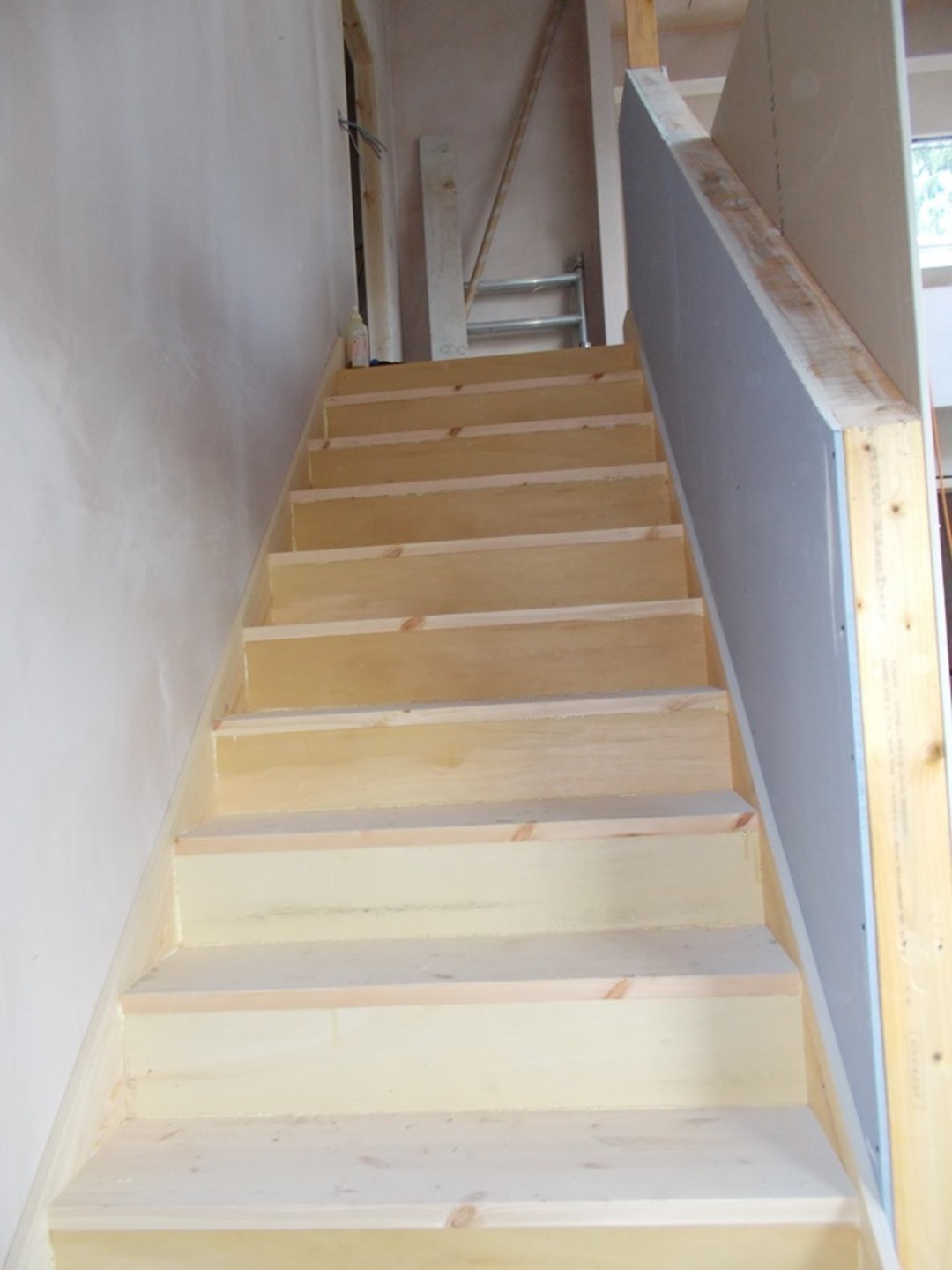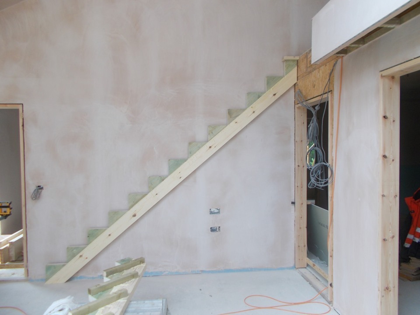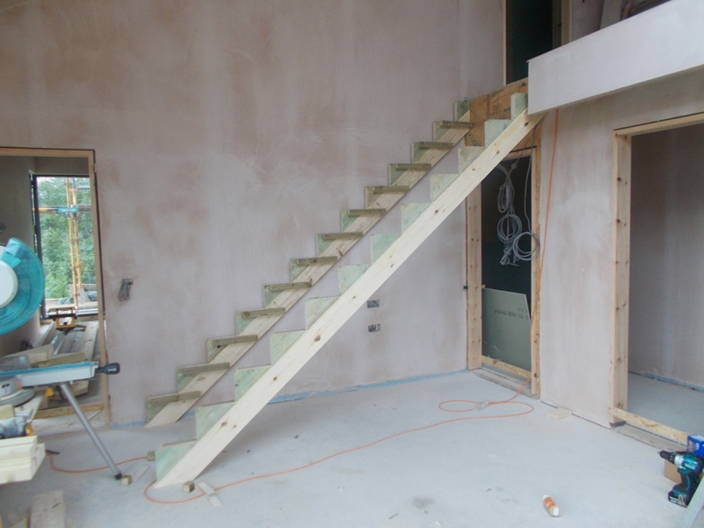 New build for an Architect with the stairs built in situ. The house had spray foam insulation for excellent "U Values" and energy efficiency.
