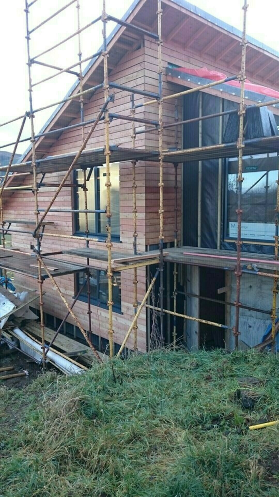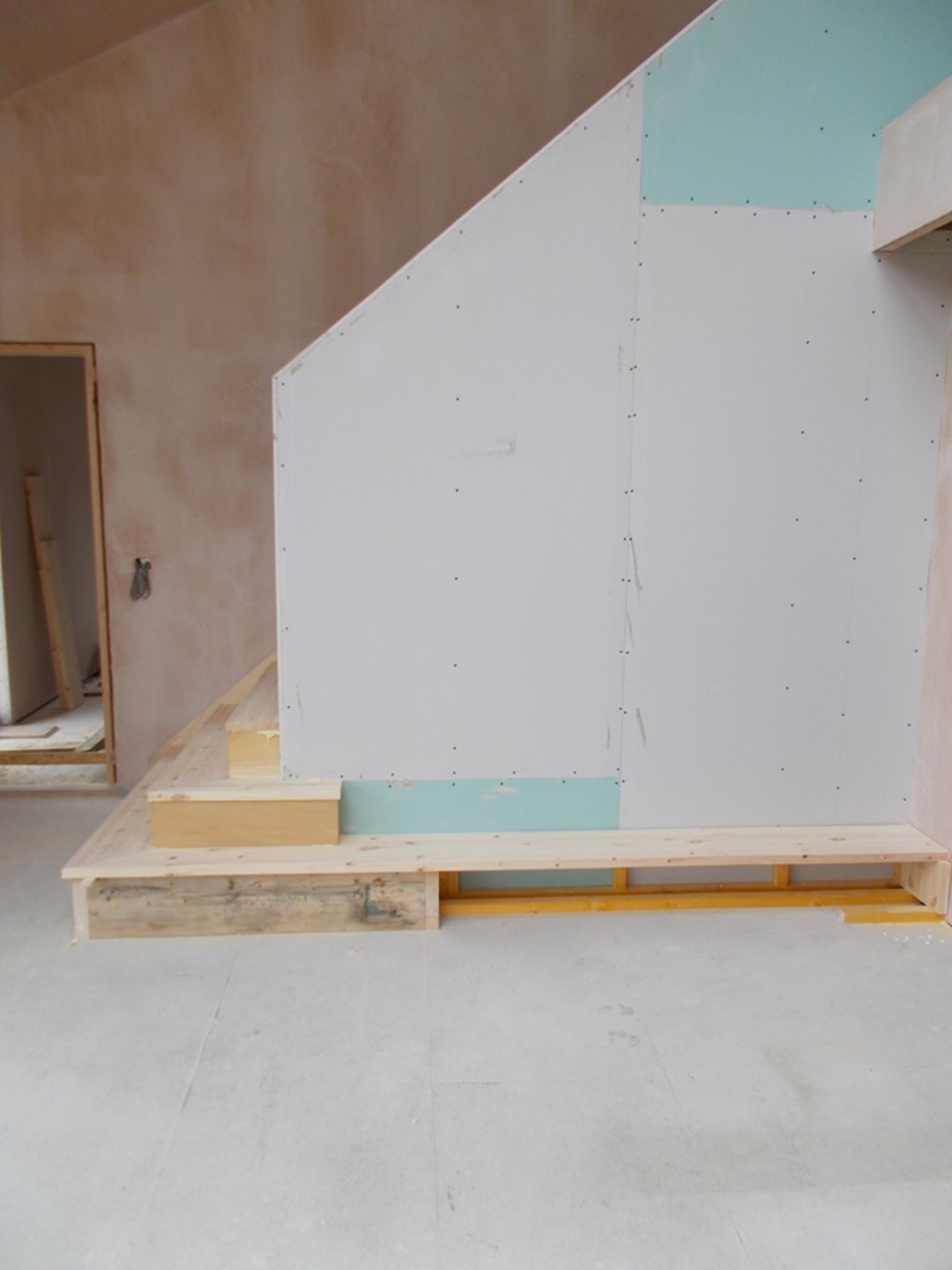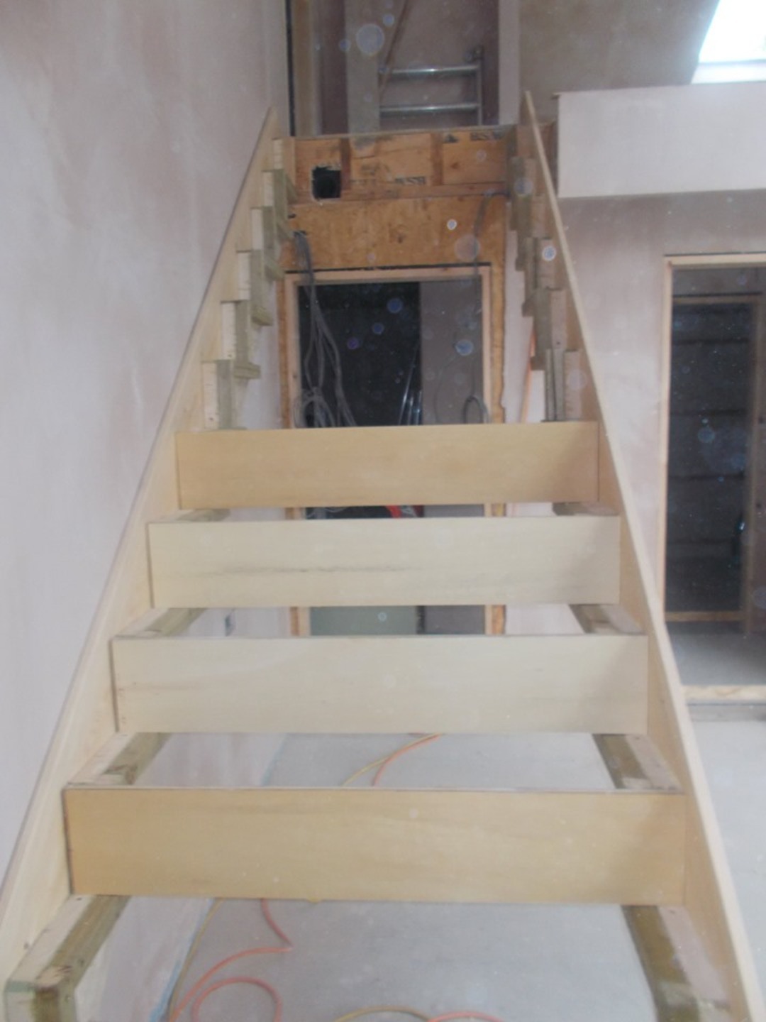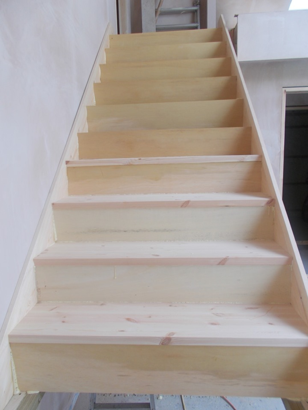 New build for an Architect with the stairs built in situ. The house had spray foam insulation for excellent "U Values" and energy efficiency.