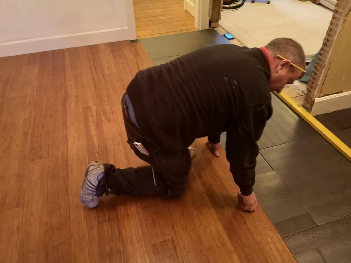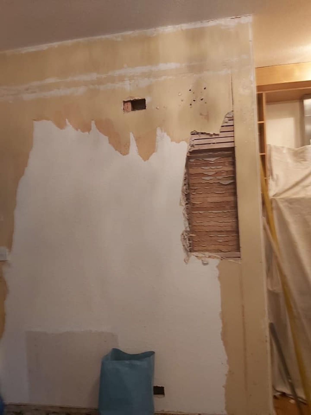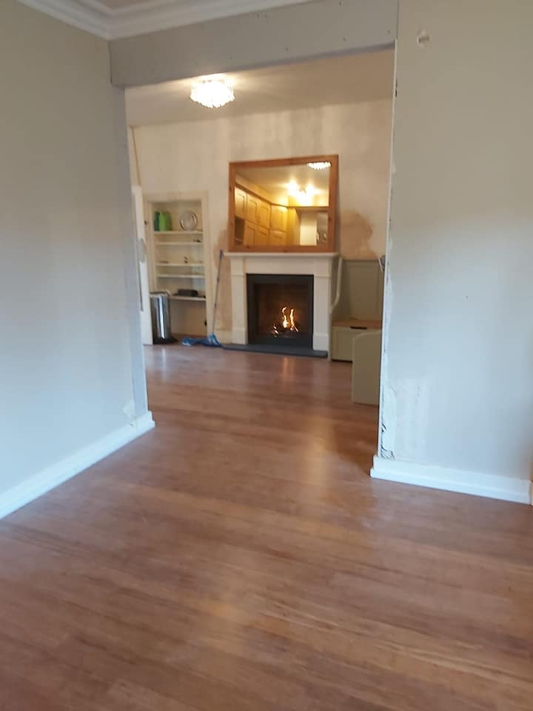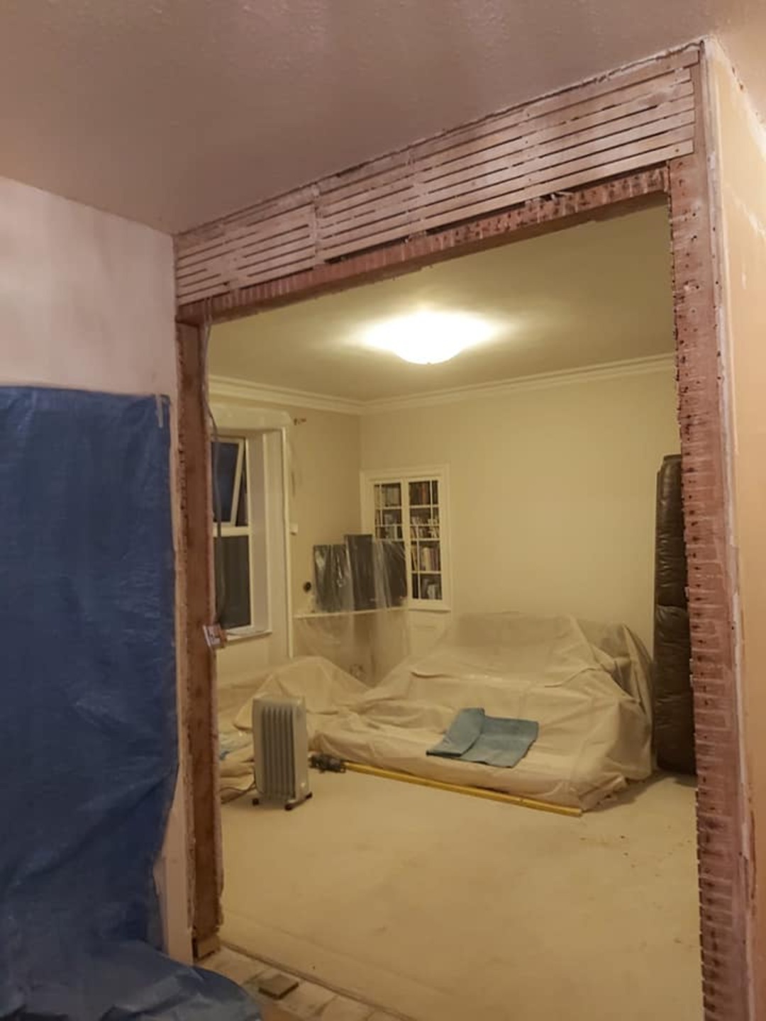 Living room wall removed to form an opening for an open plan kitchen/dining/living area.